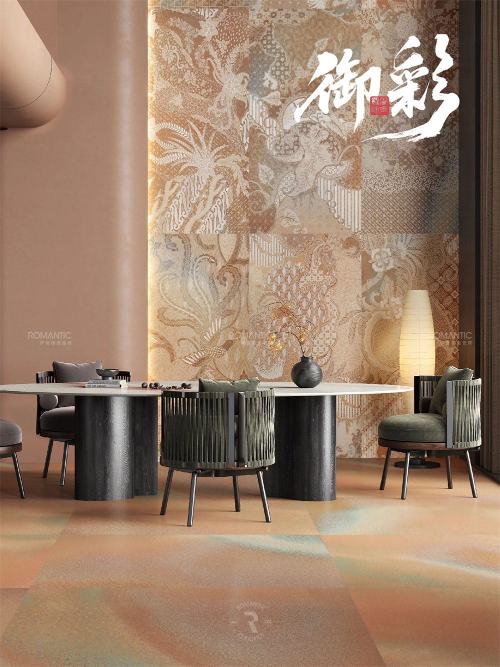 當冰冷的建材被賦予藝術的靈魂,羅曼締克瓷磚-山西長治旗艦店,以前沿的設計、豐富的選材、沉浸的體